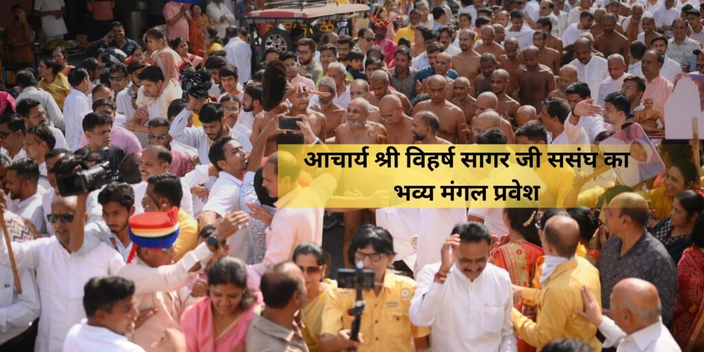 आचार्य श्री विहर्ष सागर जी ससंघ का इंदौर नगरी में भव्य मंगल प्रवेश