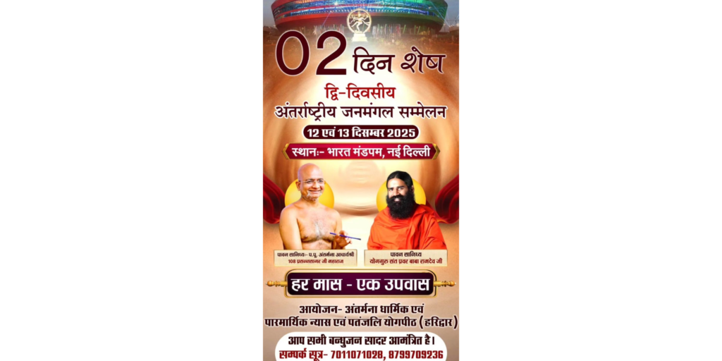 12–13 दिसंबर को दिल्ली एक ऐतिहासिक क्षण की साक्षी बनने जा रही है। पहली बार, योग, उपवास, ध्यान और भारतीय ज्ञान परंपरा को एक वैश्विक मंच पर एकजुट करते हुए “इंटरनेशनल जन्मंगल कन्वेंशन” का आयोजन हो रहा है। यह सम्मेलन सिर्फ एक आयोजन नहीं, बल्कि मानव कल्याण की दिशा में एक व्यापक आंदोलन की शुरुआत है — “One Fast Every Month”, यानी हर माह एक उपवास।
