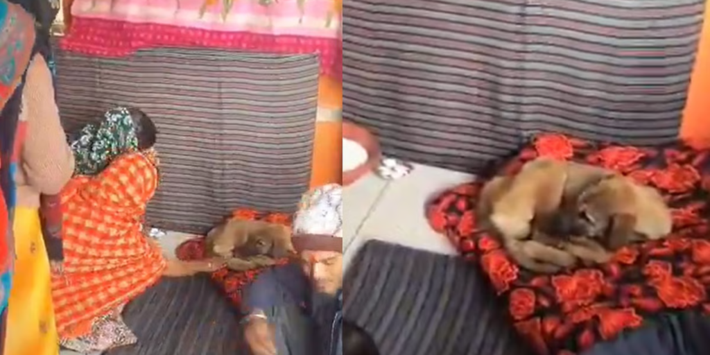 उत्तर प्रदेश के बिजनौर ज़िले के नागिना क्षेत्र के नंदपुर गाँव में स्थित एक प्राचीन मंदिर परिसर में एक आवारा जीव (कुत्ता) दिखाई दिया।